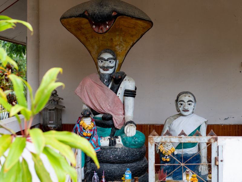 วัดทุ่งชุมพล วัดดังใน ตำบลลานข่อย อำเภอป่าพะยอม จังหวัดพัทลุง บริเวณภายในวัดทุ่งชุมพลนี้มีการสร้างศาลาตาหมื่นเกล็ด – ยายนาง ตั้งแต่ปี พ.ศ. 2548 ภายในศาลามีรูปปั้นของตาหมื่นเกล็ด และ ยายนาง ชาวบ้านเชื่อว่า ตาหมื่นเกล็ดเป็นงู และ ยายนางเป็นเสือ รูปปั้นของตาหมื่นเกล็ดยายนางนี้สร้างขึ้นจากจินตนาการรูปร่างหน้าตาเมื่อกลายเป็นคน ชาวบ้านมีความเชื่อในเรื่องการบนบานศาลกล่าวกับตาหมื่นเกล็ดและยายนางว่าหากขอสิ่งใดก็จะสมหวัง หากทรัพย์สินหายก็จะได้คืน