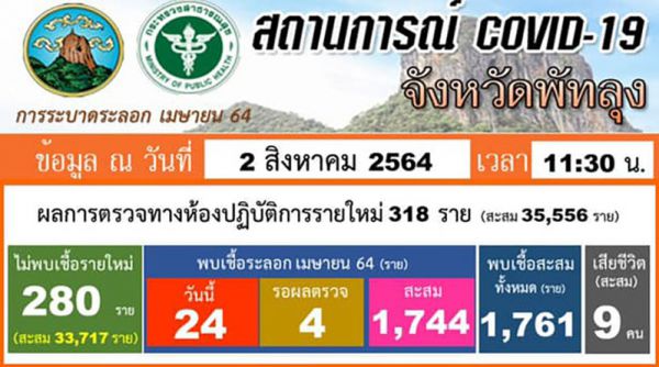✏ข้อมูล ณ วันที่ 02 สิงหาคม 2564 เวลา 11.30 น.
