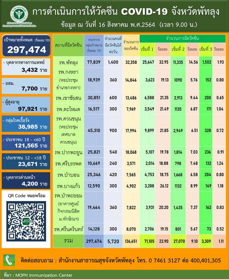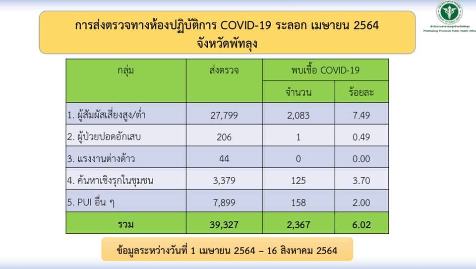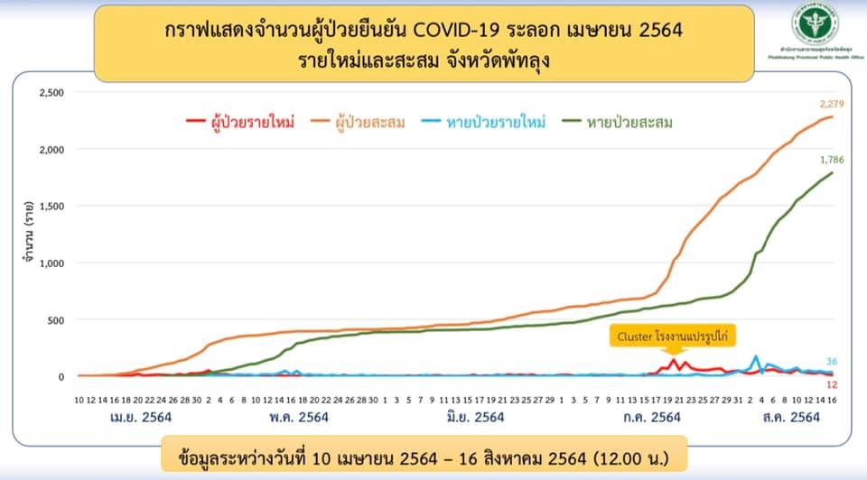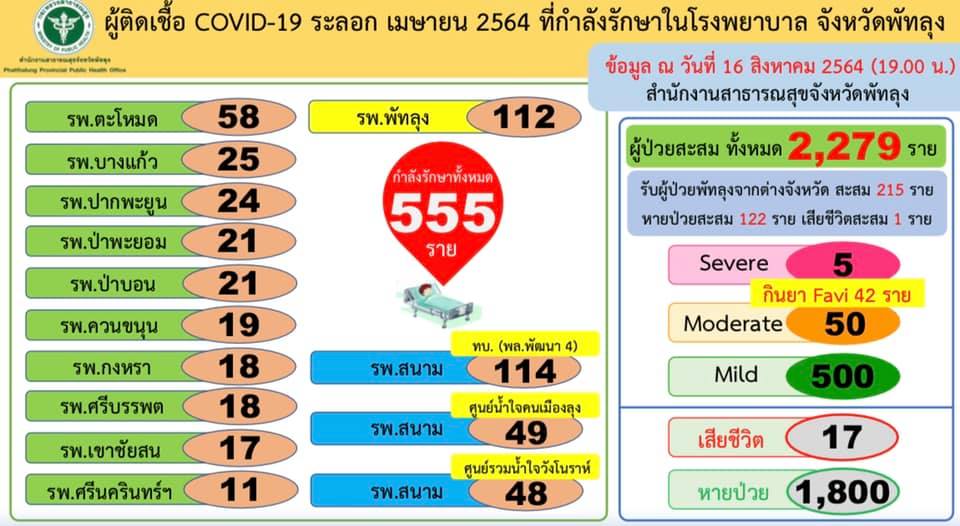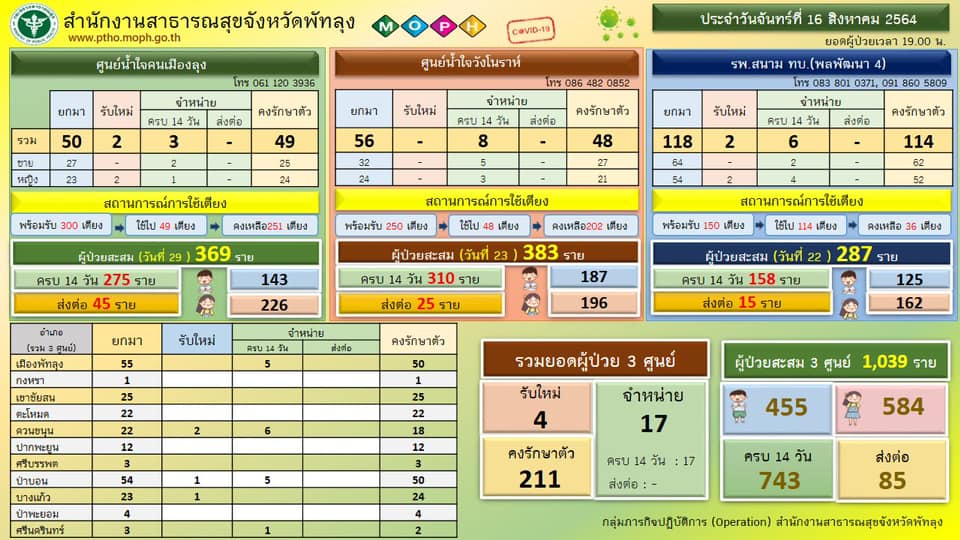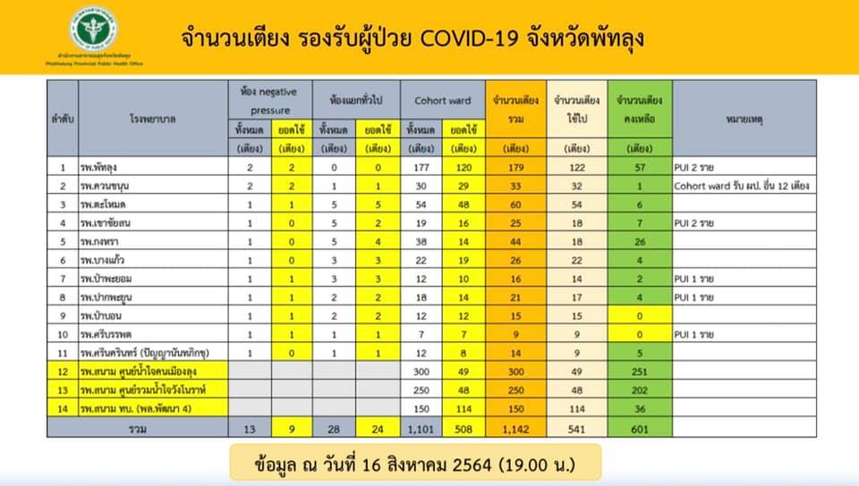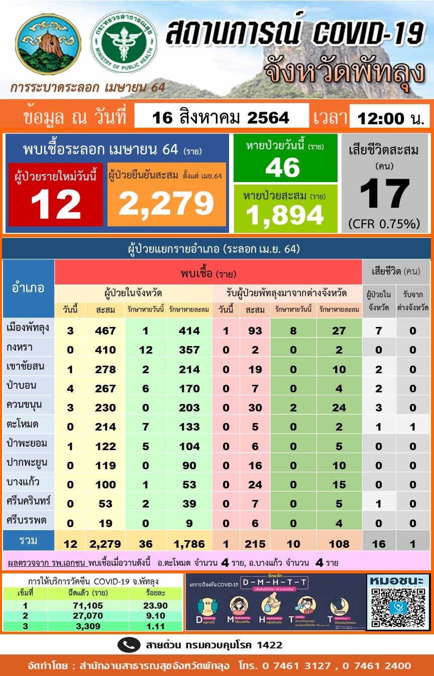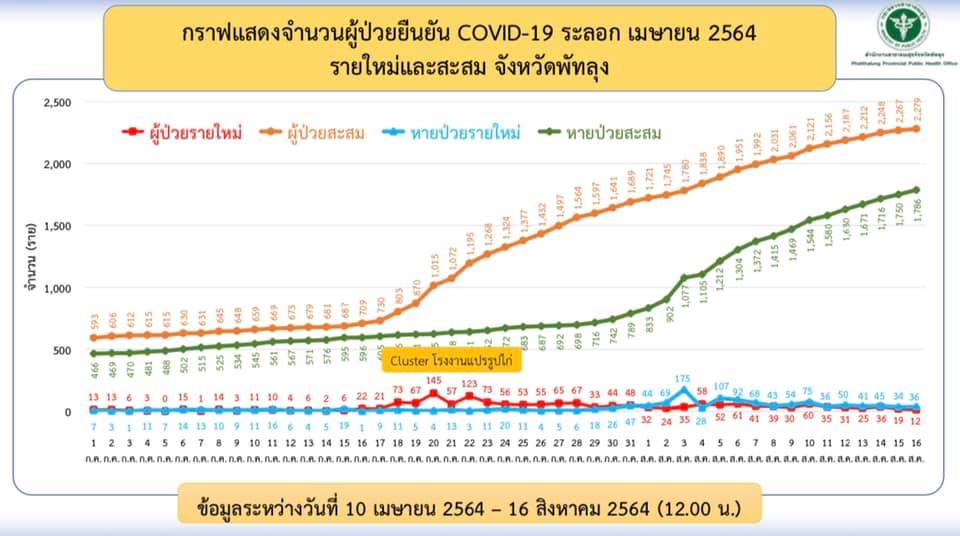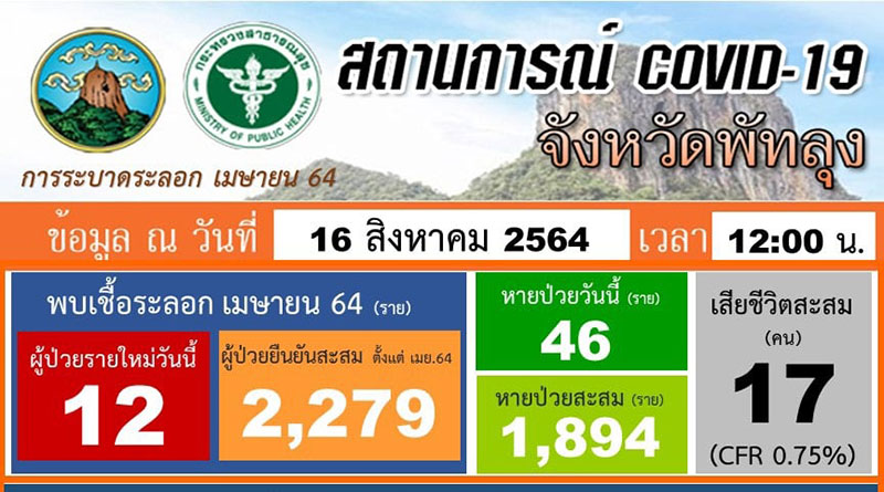 สถานการณ์ COVID-19 จังหวัดพัทลุง ข้อมูล ณ วันที่ 16 สิงหาคม 2564 (12.00 น.)