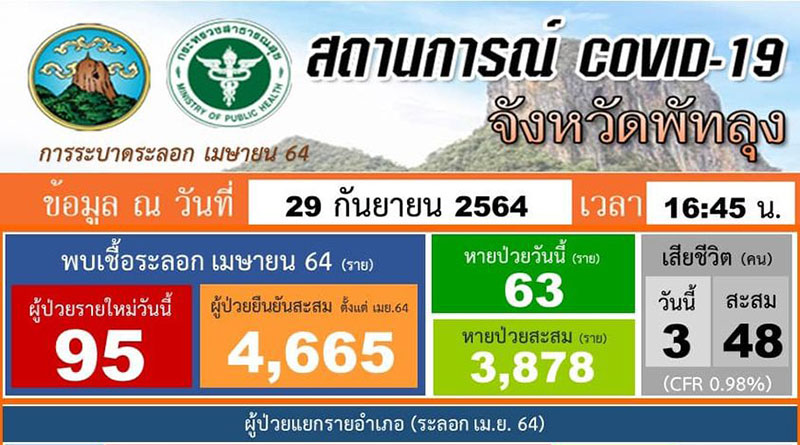 สถานการณ์ COVID-19 จังหวัดพัทลุง ข้อมูล ณ วันที่ 29 กันยายน 2564 (16.45 น.)
