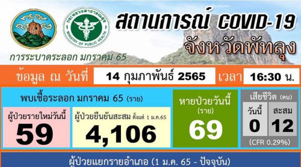 สถานการณ์ COVID-19 จังหวัดพัทลุง ข้อมูล ณ วันที่ 14 กุมภาพันธ์ 2565 (16.30 น.)